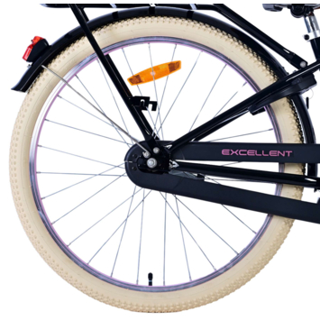 De Volare Excellent 24 inch kinderfiets in zwart is de ideale keuze voor kinderen die van avontuur houden. Of het nu naar school of naar vrienden is, deze fiets maakt elke rit comfortabel en veilig. De fiets is uitgerust met zowel een handrem als een terugtraprem voor optimale controle. De gesloten kettingkast voorkomt dat kleding vast komt te zitten en draagt bij aan de veiligheid. Daarnaast zorgt de verlichting voor en achter ervoor dat je kind goed zichtbaar is in het donker.