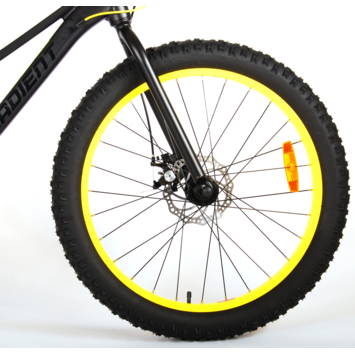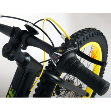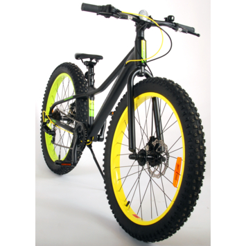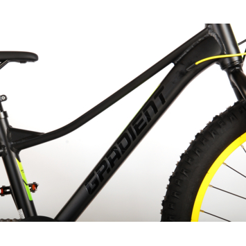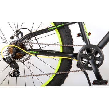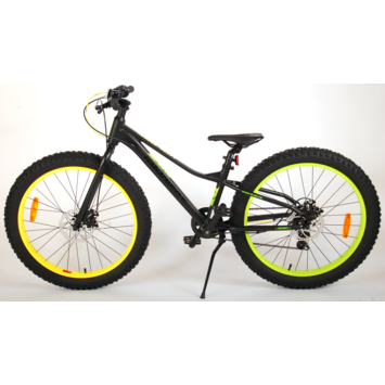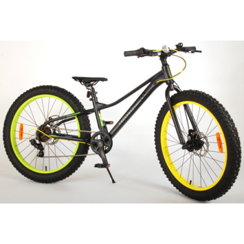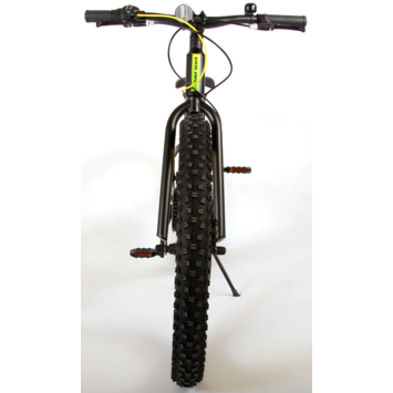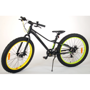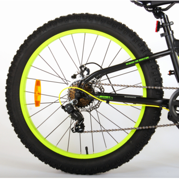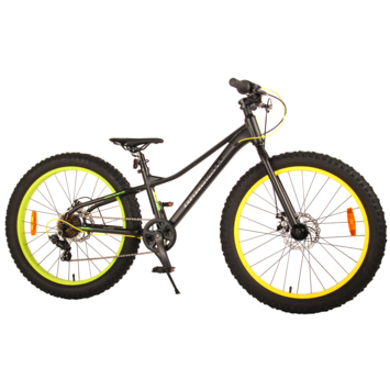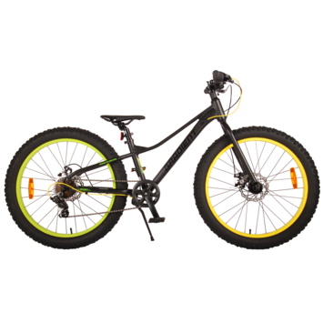 Volare Gradient 24 inch kinderfiets 7 speed. De Volare Gradient kinderfietsrange is van superieure kwaliteit. Het frame van deze fiets is gemaakt van ultra licht aluminium. Ook onderdelen zoals het stuur zijn uit aluminium vervaardigd. De verschillend gekleurde velgen geven het strakke design een bijzondere touch. Daarnaast heeft de fiets een aluminium smart control systeem, dat ervoor zorgt dat het stuur begrensd is (niet in hoogte verstelbaar), mooie extra brede luchtbanden en om snelheid te verminderen heeft de fiets twee luxe schijfremmen/handremmen (GEEN TERUGTRAPREM!). Bovendien heeft de fiets 7 versnellingen. De handvaten zijn van Kraton, een heerlijk zacht rubber, waardoor deze lekkerder in de hand liggen en extra comfort bieden. Voor de veiligheid heeft de fiets reflectoren aan de voor- en achterkant en met de fietsbel kun je laten weten dat je de hoek om komt. Met het sterke aluminium standaard kun je je fiets gemakkelijk neerzetten. De 24 inch luchtbanden maken dat deze fiets geschikt is voor jongens tussen de 8 en 10 jaar oud met kledingmaat 128-140.
