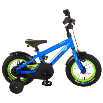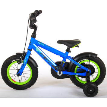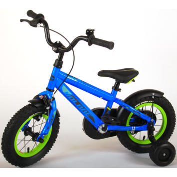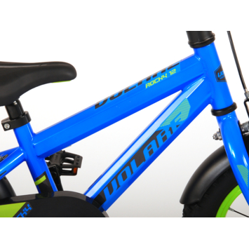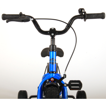 De Volare Rocky kinderfietsrange is echt van superieure kwaliteit. De Rocky fiets heeft aluminium velgen, een aluminium stuurpen, betere kwaliteit trappers, zwarte spaken en een luxe super zacht zadel met greep voor ouders. De 12 inch Rocky is een stoere jongensfiets met extra brede banden, waar ieder kinderhart sneller van gaat kloppen. Ook de spatborden zijn extra groot en mooi gevormd waardoor zij al het opspattende vuil tegenhouden. Het stuur is in hoogte verstelbaar en de zadelbuis is extra laag met een extra lange zadelpen, waardoor de fiets met uw kindje mee kan groeien. De handvatten zijn gemaakt van Kraton, een zacht rubber, waardoor de handvatten heerlijk in de hand liggen. Het geometrische frame in de blauwe kleur met watertransfer stickers maakt van deze fiets een echte eyecatcher. De fiets heeft extra brede stoer uitziende zijwieltjes om snel te kunnen leren fietsen en een gesloten kettingkast om de kleine vingertjes te beschermen. Deze fiets is dé fiets om kinderen te inspireren om de wereld te gaan ontdekken. Bovendien is de fiets voor 95% afgemonteerd, dus bijna fietsklaar. Wel zo gemakkelijk!