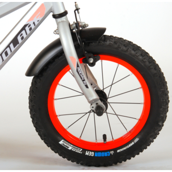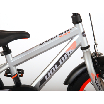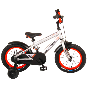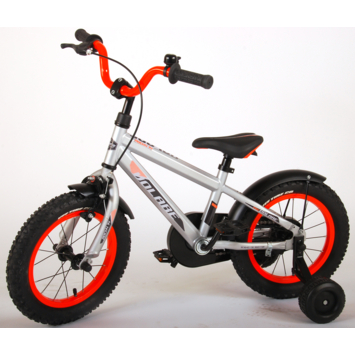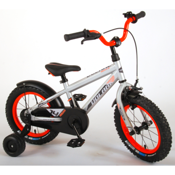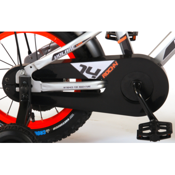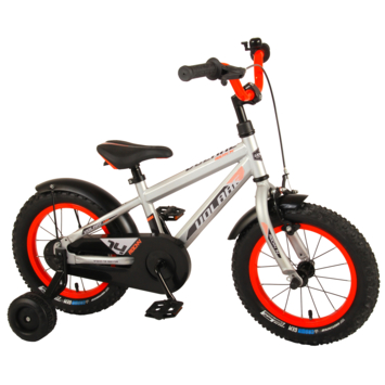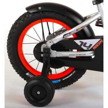 De Volare Rocky kinderfietsrange is echt van superieure kwaliteit. De Rocky fiets heeft aluminium velgen, een aluminium stuurpen, betere kwaliteit trappers, zwarte spaken en een luxe super zacht zadel met greep voor ouders. De 14 inch Rocky is een stoere jongensfiets met extra brede banden, waar ieder kinderhart sneller van gaat kloppen. Ook de spatborden zijn extra groot en mooi gevormd waardoor zij al het opspattende vuil tegenhouden. Het stuur is in hoogte verstelbaar en de zadelbuis is extra laag met een extra lange zadelpen, waardoor de fiets met uw kindje mee kan groeien. De handvatten zijn gemaakt van Kraton, een zacht rubber, waardoor de handvatten heerlijk in de hand liggen. Het geometrische frame in de zilveren kleur met watertransfer stickers maakt van deze fiets een echte eyecatcher. De fiets heeft extra brede stoer uitziende zijwieltjes om snel te kunnen leren fietsen en een gesloten kettingkast om de kleine vingertjes te beschermen. Deze fiets is dé fiets om kinderen te inspireren om de wereld te gaan ontdekken. Bovendien is de fiets voor 95% afgemonteerd, dus bijna fietsklaar. Wel zo gemakkelijk!