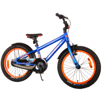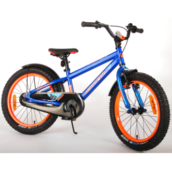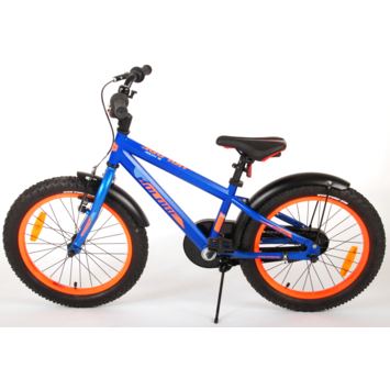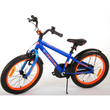 De Volare Rocky kinderfietsrange is van superieure kwaliteit. De Rocky fiets heeft aluminium velgen, een aluminium stuurpen, betere kwaliteit trappers, zwarte spaken en een luxe super zacht zadel met greep voor ouders. De 18 inch Rocky is een stoere jongensfiets met extra brede banden, waar ieder kinderhart sneller van gaat kloppen. Ook de spatborden zijn extra groot en mooi gevormd waardoor zij al het opspattende vuil tegenhouden. Om vaart te kunnen minderen heeft de fiets een veilig remsysteem met een stevige V-brake. De zadelbuis is extra laag met een extra lange zadelpen, waardoor de fiets met uw kindje mee kan groeien. Daarnaast heeft de fiets een aluminium smart control systeem, dat ervoor zorgt dat het stuur begrensd is (niet in hoogte verstelbaar). De handvatten zijn gemaakt van Kraton, een zacht rubber, waardoor de handvatten heerlijk in de hand liggen. De fiets heeft een gesloten kettingkast, stevige standaard (geen zijwielen!!) en een fietsbel. Het geometrische frame in de felblauwe kleur met watertransfer stickers maakt van deze fiets een echte eyecatcher. Deze fiets is dé fiets om kinderen te inspireren om de wereld te gaan ontdekken. Bovendien is de fiets voor 95% afgemonteerd, dus bijna fietsklaar. Wel zo gemakkelijk!