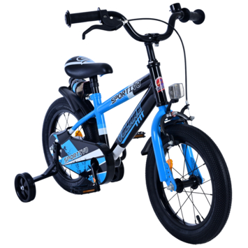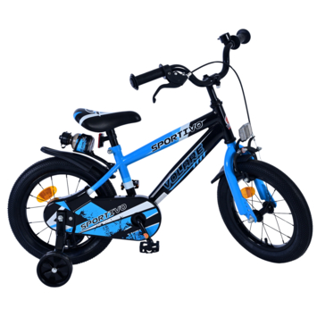 Met de Volare Sportivo 14 inch kinderfiets in blauw en zwart wordt leren fietsen een waar avontuur! Deze fiets is ontworpen met veiligheid als hoogste prioriteit. De fiets heeft een gesloten kettingkast om de vingers van je kind te beschermen, een handrem, een terugtraprem en afneembare zijwieltjes voor extra stabiliteit. Zo leert je kind snel en veilig fietsen.
