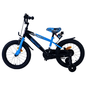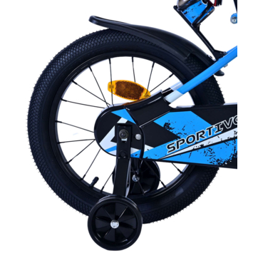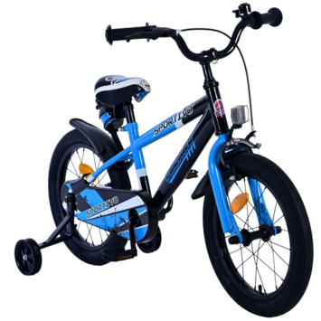 De Volare Sportivo 16 inch kinderfiets is een stoere en sportieve keuze voor jonge fietsers. De zwart-blauwe kleurencombinatie geeft de fiets een moderne uitstraling. Veiligheid staat natuurlijk voorop: met een stevige gesloten kettingkast, een handrem en een terugtraprem kan je kind veilig de wereld ontdekken. De afneembare zijwieltjes helpen bij het leren fietsen en kunnen eenvoudig worden verwijderd wanneer ze niet meer nodig zijn.