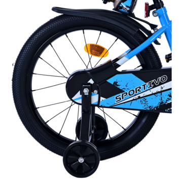 Met de Volare Sportivo 18 inch kinderfiets wordt leren fietsen een groot avontuur! De stoere blauw-zwarte kleur en het robuuste frame geven deze fiets een sportieve uitstraling. Of je nu een ritje maakt door de buurt of speelt met vriendjes, deze fiets is klaar voor actie!
