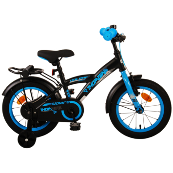 Leren fietsen is een waar avontuur met de Volare Thombike 14 inch kinderfiets! Deze stoere fiets in blauw en zwart heeft alles wat je nodig hebt voor een veilige en plezierige rit. Voor de veiligheid is de Thombike uitgerust met zowel een handrem als een terugtraprem, een gesloten kettingkast en afneembare zijwieltjes. Zo kan je kind met vertrouwen leren fietsen.