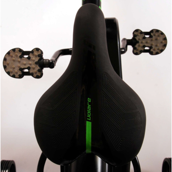 Met de Volare Thombike 16 inch kan jouw kind veilig en comfortabel de wereld verkennen. Deze stoere kinderfiets in zwart met groene accenten is niet alleen een blikvanger, maar ook zeer praktisch. De combinatie van een handrem en terugtraprem zorgt voor optimale controle. Dankzij de gesloten kettingkast blijft de ketting goed beschermd, en met de afneembare zijwieltjes kan je kind stap voor stap leren fietsen.
