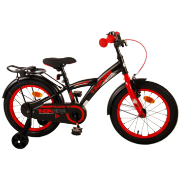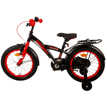 Met de Volare Thombike 16 inch kinderfiets in stoer zwart en rood is fietsen niet alleen leuk maar ook veilig. Deze fiets is uitgerust met een handrem en terugtraprem, zodat je kind altijd controle houdt. De gesloten kettingkast voorkomt vieze of beknelde kleding, en de afneembare zijwieltjes bieden stabiliteit tijdens het leren fietsen.