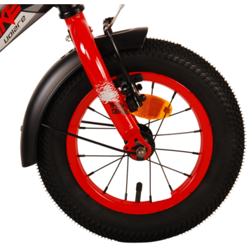 De Volare Thombike 12 inch kinderfiets is dé fiets voor kleine avonturiers. Deze stoere fiets in zwart met rode accenten is niet alleen een blikvanger, maar ook zeer veilig. Met een handrem, terugtraprem en een gesloten kettingkast is je kind goed beschermd tijdens het fietsen. De extra lange spatborden houden het vuil op afstand, zodat kleding schoon blijft.