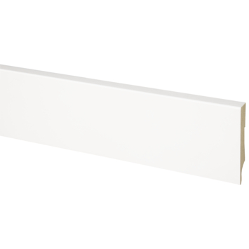 De MDF muurplint met witte folie past bij elke vloer en zorgt voor een strakke, onzichtbare afwerking. Eenvoudig te monteren met spijkers, lijm of kit. Afmetingen: 240 cm lang, 75 mm hoog, 14 mm diep. Overschildbaar na licht schuren. Gemaakt van PEFC-gecertificeerd hout uit duurzaam beheerde bossen. Onderhoudsvriendelijk: afneembaar met een vochtige doek en mild schoonmaakmiddel.