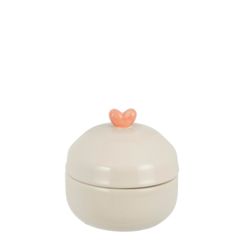 Voorraadpot wit keramiek met hartjes - H13 x ø12,5 cm