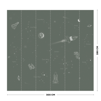 Met het PVC vrije vtwonen fotobehang space army green (dessin 145409) tover je eenvoudig een muur van je kamer om in een echte blikvanger. De afbeelding bestaat uit 1 rol van 6 banen van 50 cm en heeft een totale afmeting van 280x300 cm (hxb). Baan 1 past rapportloos aan baan 6 dus is te verlengen tot elke gewenste breedte (let op! dat de batchnummers hetzelfde zijn). Dit fotobehang is gedrukt op een vlies ondergrond. Vliesbehang is zowel gemakkelijk aan te brengen als te verwijderen, waarbij je geen behangtafel of afstomer nodig hebt. Je brengt eenvoudig de lijm aan op de muur en het behang kan worden geplakt. Voor het beste resultaat dienen de te beplakken oppervlakken droog, vlak en egaal van kleur te zijn. Kortom, kies voor vtwonen fotobehang space army green (dessin 145409) als je op zoek bent naar een gemakkelijke en snelle manier om jouw kamer een nieuwe uitstraling te geven volgens de laatste woontrends.