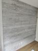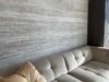 Fotobehang travertin is makkelijk aan te brengen, stevig papier, de banen sluiten goed aan. In het echt is de kleur anders dan op het etiket, niet grijs, beige, zandkleur, maar groeniger.