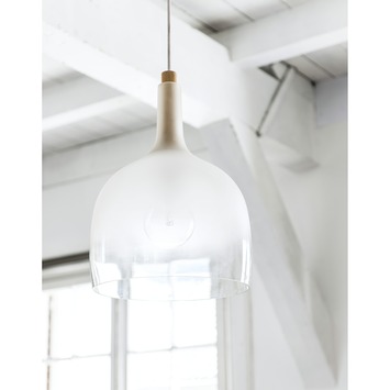 Ik heb vorige maand 2 van deze lampen gekocht bij Karwei en eerlijk gezegd was ik in het begin wat sceptisch. Maar sinds deze hangen ben ik de lampen enorm gaan waarderen. Ik was op zoek naar 'iets anders' en dat heb ik met deze lamp gevonden. Het licht verspreid zich mooi doordat het bovenste gedeelte matglas is en dat loopt af naar helder glas! Zelf hebben wij de lamp aan het plafond gemonteerd met een plank, wat in onze ogen goed gelukt is. Zie voor resultaat de foto.