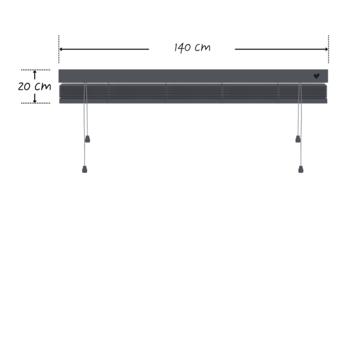 Deze jaloezie heeft lamellen van 50 mm breed, de lamellen kunnen gekanteld worden d.m.v. een trekkoord, waardoor je met de inval van het licht en de mate van inkijk kunt spelen. Wanneer de lamellen gesloten zijn, kunnen er altijd nog kleine lichtstralen tussen de lamellen zichtbaar zijn. Met het optrekkoord is de jaloezie eenvoudig op te trekken of te laten zakken. De genoemde breedte van het product is incl. bevestigingssteunen.