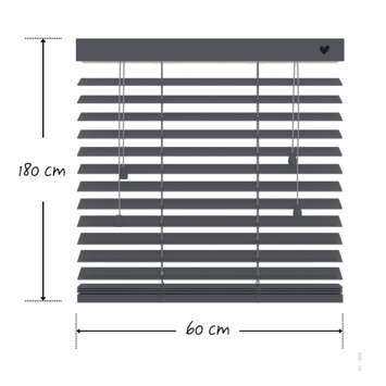 Deze jaloezie heeft lamellen van 50 mm breed, de lamellen kunnen gekanteld worden d.m.v. een trekkoord, waardoor je met de inval van het licht en de mate van inkijk kunt spelen. Wanneer de lamellen gesloten zijn, kunnen er altijd nog kleine lichtstralen tussen de lamellen zichtbaar zijn. Met het optrekkoord is de jaloezie eenvoudig op te trekken of te laten zakken. De genoemde breedte van het product is incl. bevestigingssteunen.