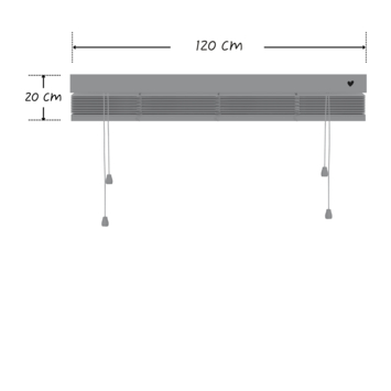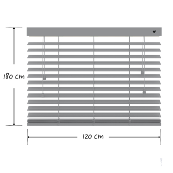 Deze jaloezie heeft lamellen van 50 mm breed, de lamellen kunnen gekanteld worden d.m.v. een trekkoord, waardoor je met de inval van het licht en de mate van inkijk kunt spelen. Wanneer de lamellen gesloten zijn, kunnen er altijd nog kleine lichtstralen tussen de lamellen zichtbaar zijn. Met het optrekkoord is de jaloezie eenvoudig op te trekken of te laten zakken. De genoemde breedte van het product is incl. bevestigingssteunen.