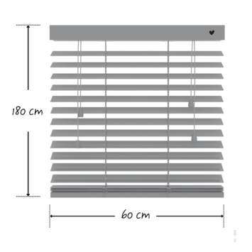 Deze jaloezie heeft lamellen van 50 mm breed, de lamellen kunnen gekanteld worden d.m.v. een trekkoord, waardoor je met de inval van het licht en de mate van inkijk kunt spelen. Wanneer de lamellen gesloten zijn, kunnen er altijd nog kleine lichtstralen tussen de lamellen zichtbaar zijn. Met het optrekkoord is de jaloezie eenvoudig op te trekken of te laten zakken. De genoemde breedte van het product is incl. bevestigingssteunen.