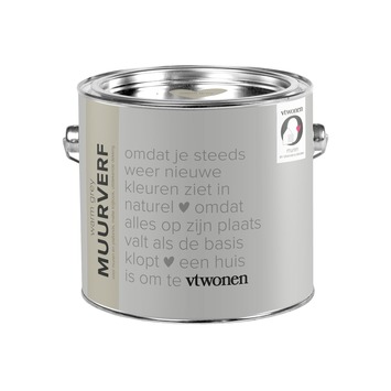 Wil je kleur in huis? Dan zit je goed met de verfcollectie van vtwonen. Deze hoogwaardige, uitstekend dekkende muurverf heeft een matte krijtlook voor een maximaal poederachtige krijtverf uitstraling. De vtwonen muurverf krijtlook mat warm grey 2,5 liter is op waterbasis en geschikt voor muren en plafonds, niet geschikt voor badkamers en vochtige ruimtes.