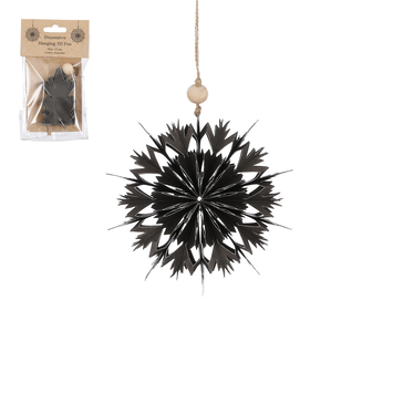 Maak jouw huis klaar voor de feestdagen met deze waaier uit de collectie van vtwonen. De zwarte kersthanger is gemaakt van papier. Erg feestelijk voor in je kerstboom! Het ornament is voorzien van een ophangkoord met houten kraal waardoor je deze eenvoudig overal leuk kan ophangen. De waaier is 4 cm hoog en heeft een diameter van 15 cm. Ook leuk om te combineren met meerdere kersthangers zoals sterren of sneeuwvlokken voor een speels effect.
