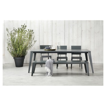 De vtwonen tuinbank Dock 180 cm is een strakke antracietkleurige tuinbank met polycement zitvlak en onderstel van acaciahout. Deze tuinbank past in iedere tuin. Om het geheel af te maken, combineer je deze tuinbank met de dinertafel Dock. In het najaar en in de winter is het belangrijk om het tuinmeubel droog en vorstvrij op te slaan. Een meubelhoes over het tuinmeubel plaatsen is mogelijk, maar om het tuinmeubel netjes te houden moet het wel mogelijk zijn dat er een frisse lucht onder de hoes door kan waaien. Wanneer dit niet mogelijk is, kan vocht zich ophopen en zo de tuinbank beschadigen. De vtwonen tuinbank Dock antraciet is 45 centimeter hoog, 180 centimeter breed en 40 diep.