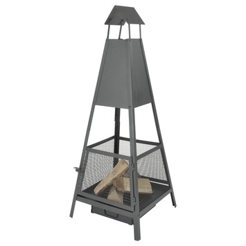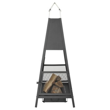 Deze vuurkorf piramide is de ideale vuurkorf voor in elke tuin. Deze unieke vuurkorf heeft de vorm van een piramide. Door deze bijzondere vorm is de sfeerhaard een echte eye catcher voor in de tuin. Het vuur wordt afgeschermd met een rooster, waardoor het as niet op je terras terecht komt. De piramidehaard is geschikt voor haardhout blokken tot circa 50 centimeter. Door de hoogte van de vuurkorf waait de rook niet in je gezicht maar wordt deze direct de lucht in 'gestuwd'.