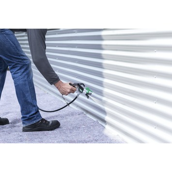 De Control Pro 250 M is een compacte airless-spuitmachine met draaggreep . Voor alle schilderwerkzaamheden van de ervaren doe-het-zelver, serviceverlener en de ZZP-er die af en toe spuitprojecten heeft. Het materiaal wordt verneveld via High Efficiency Airless, HEA-technologie. Met een lage druk voor een spuitnevelarme, perfect dekkende verflaag. Gecombineerd met een nieuw spuittipontwerp overtuigt dit airless-spuitsysteem met maximale controle en professionele resultaten zonder streepvorming. Op deze manier kunnen met de Control Pro 250 M niet alleen geoefende gebruikers, maar ook startende spuiters eenvoudig een perfect spuitresultaat bereiken. Alle oplosmiddelhoudende en waterverdunbare lakken, beitsen en houtbeschermingsmiddelen plus dispersie- en latexverf kunnen worden verwerkt.