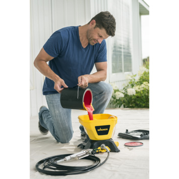 Het eerste professionele High efficiency Airless toestel op maat voor de Doe Het Zelver gemaakt. Het handige reservoir met een inhoud van 5 liter in combinatie met de vernieuwende HEA technologie zorgt er voor dat elke verfklus een waar plezier wordt! Geschikt voor het spuiten van muurverf, primers, lak, vernis, houtbeschermingsmiddelen, olie of beits, op waterbasis of op solventbasis. High efficiency Airless zuigerpomp voor middelgrote tot grote projecten binnen en buiten.
