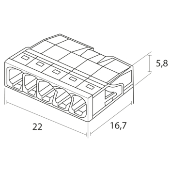 Met de 5-voudige lasklemmen van Wago kun je eenvoudig stroomkabels met elkaar verbinden. Deze klem heeft aanzienlijk minder ruimte nodig dan de andere series van Wago. Bij geringe ruimte in je inbouwdoos of lasdoos is deze lasklem aan te raden. Met het nieuwe ontwikkelde contactsysteem van Wago is de kans op beschadiging van de aders klein en door de transparante behuizing goed te controleren of de aders goed zijn aangesloten. Geschikt voor aderdiameters van 0,5 tot 2,5 mm² (massief) individueel te combineren, dus nog slechts één serie voor het aansluiten van alle diameters benodigd. De lasklem heeft een grote controleopening voor alle gangbare meetpennen.