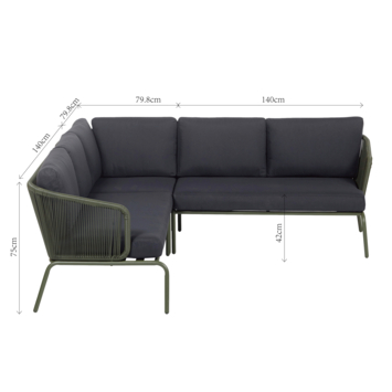 - Set bestaat uit een hoekloungebank, zit- en rug kussens