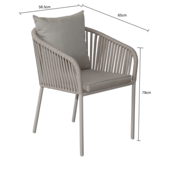 Tuinstoel Bowie in beige is een stijlvolle en praktische keuze voor elke tuin of terras. Met een zithoogte van 45 cm biedt deze stoel een ontspannen zitervaring, perfect voor lange zomeravonden.