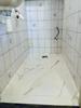 Mooie grote vloertegels, die er uitzien als marmer, maar dan met de handige eigenschappen van keramische tegels. Gebruikt in het toilet in combinatie met vloerverwarming. Erg aangenaam! Gelijmd met witte watervaste flexibele tegellijm met gebruikmaking van een levelling systeem, en zilvergrijs gevoegd. Let op: het zijn erg hard gebakken tegels, waardoor je met boren zorgvuldig te werk moet gaan en een diamantboor moet gebruiken, eventueel gekoeld.