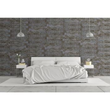 Dit natuursteenfineer is een licht, flexibel paneel van natuursteen wat is gesplitst van echt leisteen. De uitwisseling van de kleuren in elke steenlaag hebben een natuurlijk kenmerk en resulteert daarom in levendige kleuren. Het kwartsiet in het gesteente zorgt voor een subtiele, natuurlijke glitter en glans. Er zijn geen toevoegingen gedaan aan de textuur, kleur of pigmentaties, hierdoor is elk paneel uniek. Het natuursteen is aan de achterzijde voorzien van een polyester laag en daardoor ontzettend licht en dus eenvoudig in de verwerking. Omdat deze panelen ultra dun zijn kunnen ze worden aangebracht op glooiende wanden en ook zelfs rond worden geplaatst tot een diameter van 30 cm. Het monteren van de panelen doe je eenvoudig met montage kit. Zorg er voor dat de kit niet direct op de rand word geplaatst, zodat deze bij het aandrukken niet buiten