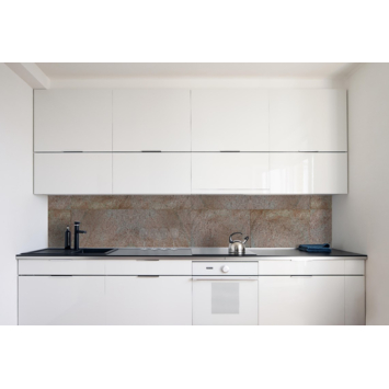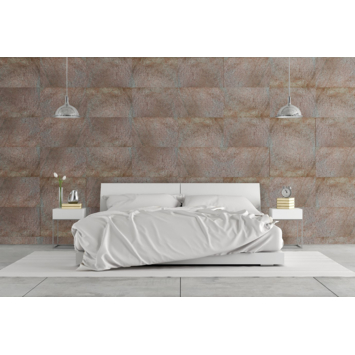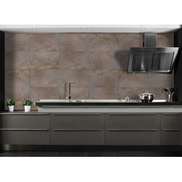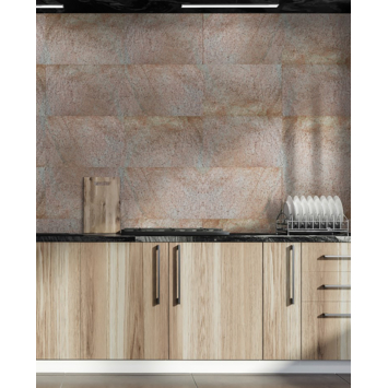 Dit natuursteenfineer is een licht, flexibel paneel van natuursteen wat is gesplitst van echt leisteen. De uitwisseling van de kleuren in elke steenlaag hebben een natuurlijk kenmerk en resulteert daarom in levendige kleuren. Het kwartsiet in het gesteente zorgt voor een subtiele, natuurlijke glitter en glans. Er zijn geen toevoegingen gedaan aan de textuur, kleur of pigmentaties, hierdoor is elk paneel uniek. Het natuursteen is aan de achterzijde voorzien van een polyester laag en daardoor ontzettend licht en dus eenvoudig in de verwerking. Omdat deze panelen ultra dun zijn kunnen ze worden aangebracht op glooiende wanden en ook zelfs rond worden geplaatst tot een diameter van 30 cm. Het monteren van de panelen doe je eenvoudig met montage kit. Zorg er voor dat de kit niet direct op de rand word geplaatst, zodat deze bij het aandrukken niet buiten