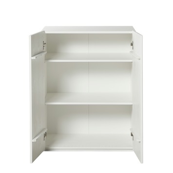 Het WOOOD kastje Bind (hxbxd: 90x70x41) is een veelzijdige kast en past in vrijwel iedere woonstijl. Het kastje Bind is voorzien van twee deuren met solide metalen scharnieren. Het kastje Bind is gemaakt van massief grenen hout (FSC gecertificeerd) gecombineerd met 2 gemelamineerde legplanken, gelakt in de kleur wit. Combineer meerdere Bind kastjes met elkaar, naast elkaar of op elkaar, en creëer zo een eigentijdse kastenwand.