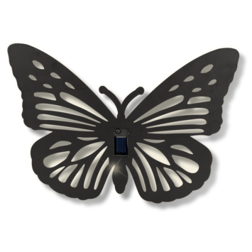 Wandornament vlinder LED solar zwart