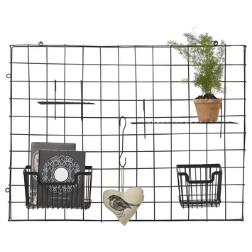 Het wandrek metaal zwart is een functionele en hippe blikvanger. Door alle accessoires is het rek geschikt voor veel doeleinden. Gebruik het als opberger voor je hobbyspullen, in de keuken is het een overzichtelijke opberger van kookgerei, op de kinderkamer is het een wisselende expositie van kinderknutsels.