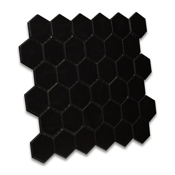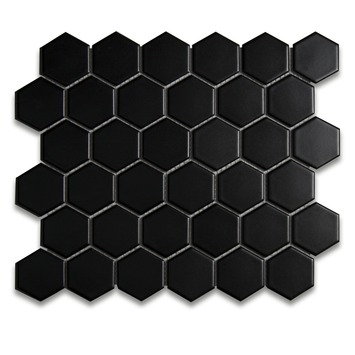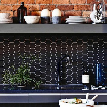 Deze tegels hebben een eenvoudig herhaalbaar patroon, waardoor elke muur volledig of slechts deels bedekt kan worden zonder een naad in het patroon te vinden. De zwarte hexagons zorgen voor een strakke moderne stijl en zijn ook nog eens eenvoudig te reinigen.