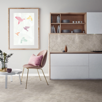 Deze trendy hexagon tegels maken elke ruimte hip! De Odensa is een taupe kleurige zeshoekige tegel. Ideal voor de badkamer, keuken of het toilet. De tegel heeft een effen taupe kleur met een getrommelde afwerking en een licht relief, golvend oppervlakte. De tegels zijn geschikt voor elke ruimte, nat en droog, binnen en buiten en is geschikt voor zowel wand als vloer.