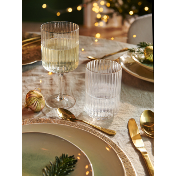 Met dit waterglas creëer je eenvoudig een feestelijke sfeer op tafel. Het glas is voorzien van mooie gouden details, perfect voor feestelijke gelegenheden of voor de feestdagen. Ook leuk te combineren met de bijpassende wijnglazen of champagneglazen.