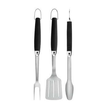 Met het Weber accessoireset driedelig kun je klassiek barbecueën. De set bestaat uit een spatel, tang en vork welke zijn gemaakt van roestvrij staal, de handgrepen zijn gemaakt van kunststof. Het gereedschapsset is zwart van kleur.