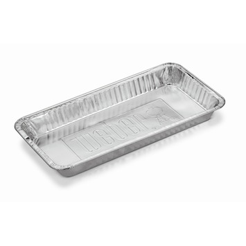 De Weber Aluminium Lekbakjes XL zijn geschikt voor houtskoolbarbecues met een diameter van 57 centimeter. De grote bakjes zijn ideaal voor de indirecte grillmethode waarbij je het lekbakje in het midden van de barbecue op het onderrooster plaatst en vervolgens de briketten aan de zijkant van de ketel legt. Vetten en sappen lekken in het in het lekbakje zodat deze makkelijk weggegooid kunnen worden. Om rookontwikkeling te voorkomen kun je een beetje water in het bakje doen. In het pakket zitten 5 aluminium lekbakjes XL.