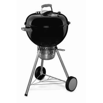 De Weber barbecue Original Kettle Premium zwart 47 cm maakt het barbecueën aangenaam. Deze Weber barbecue heeft twee houtskoolrails wat ideaal is voor de indirecte grillmethode. Het bovenrooster is verchroomd en heeft scharnieren voor het eenvoudig bijvullen van briketten. Deze barbecue is extra veilig door de dekselgreep met hitteschild en het vernieuwde en innovatieve asopvangsysteem dat het verwijderen van de as gemakkelijker maakt. De Original Kettle Premium heeft een One-Touch systeem voor het verwijderen van de as en het openen en sluiten van de ventilatieroosters voor optimale temperatuurregeling. In de deksel zit een thermometer voor permanente temperatuurcontrole tijdens het barbecueën. Een aan de binnenkant vastgelaste dekselhaak zorgt er daarbij voor dat je jouw eten tegen de wind kunt beschermen en dat je de deksel gemakkelijk aan de ketel op kunt hangen. De twee met glasvezel versterkte handgrepen hebben gereedschapshaken. Daarbij heeft de Original Kettle Premium scheurvaste en weerbestendige wielen waardoor de barbecue veilig te verplaatsen is. Het kookoppervlakte van deze Weber Original Kettle Premium is 47 centimeter. Het geïsoleerde ventilatierooster is van roestvrij aluminium. Ook handig: met de brikettenmaatbeker kun je precies de juiste hoeveelheid briketten afmeten. De poten van de barbecue bevatten een nieuw Push-Pin systeem waardoor de barbecue gemakkelijk op te bouwen is en stabiel staat. De Weber barbecue Original Kettle Premium is ook verkrijgbaar met een kookoppervlakte van 57 centimeter. De barbecue is 89 centimeter hoog, 51,2 centimeter breed en 62 centimeter diep.