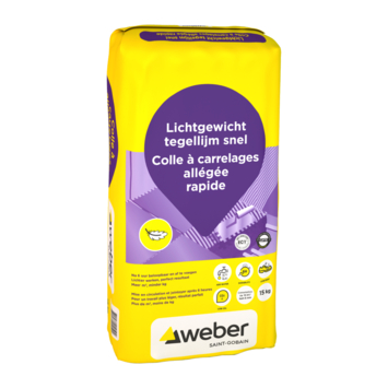 Extra makkelijk tegelen en snel genieten met de Weber Beamix Lichtgewicht tegellijm snel. Wil je zo snel mogelijk weer douchen, koken of gewoon over de vloer lopen? Dan is Weber Beamix Lichtgewicht tegellijm snel dé oplossing. Door de snelle uitharding na het tegelen, is de vloer al na 6 uur af te werken. Deze snel uithardende lichtgewicht poeder tegellijm is net zo sterk als andere tegellijm, maar weegt stukken minder. En je haalt bovendien evenveel tegellijm uit één zak ten opzichte van andere traditionele tegellijmen. Flexibel, lichtgewicht, stofarm én snel uithardend ideaal voor het verlijmen van tegels tot 60 x 60 op wanden en vloeren, binnen en buiten, eveneens geschikt voor vloerverwarming.