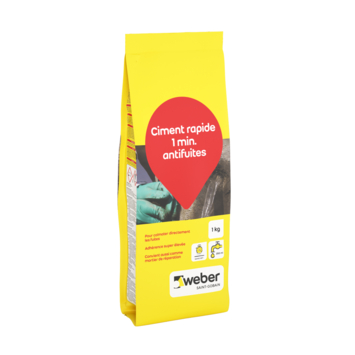 Weber Beamix Repair Snelcement Waterstop 1 kg is de ideale oplossing voor snel en effectief repareren van lekkages. Dit snelcement hardt binnen 1 minuut uit, waardoor je direct een waterdichte afsluiting kunt maken. Het is krimparm en chloridevrij, waardoor het veilig is voor gebruik op steenachtige ondergronden, zowel binnen als buiten. Het product is perfect voor het dichten van gaten, scheuren en het stoppen van lekkages, en kan zelfs op het lek zelf worden gedrukt om het vocht te stoppen. Met Weber Beamix Repair Snelcement Waterstop 1 kg is beton in no time weer als nieuw.