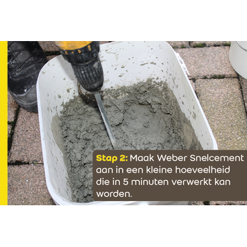 Repareer met Weber Beamix repair snelcement 4kg snel en eenvoudig steenachtige ondergronden, zowel binnen als buiten. Het snelcement is krimparm en vrij van chloride. Het wordt geleverd in een verpakking met een gewicht van 2kg. Niet alleen kun je het snelcement gebruiken voor reparaties aan en montage van trapleuningen, balustrades en leidingen, ook is het geschikt voor het dichten van gaten en scheuren.