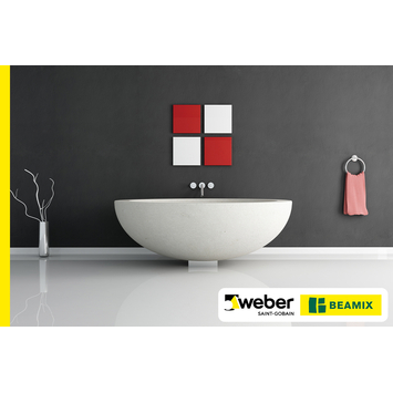 Weber Beamix Waterdichte stucmortel is een grijze, kant-en-klare, fabrieksmatig vervaardigde cementgebonden waterdichte stucmortel op basis van EN 998-1 CS IV. Deze stuc is ideaal voor het waterdicht maken van kelders, zwembaden, natte ruimtes en gevels. De stucmortel is bestand tegen alle soorten waterdruk en is eenvoudig verwerkbaar. Met deze stucmortel ben je verzekerd van een goede bescherming tegen vochtproblemen.