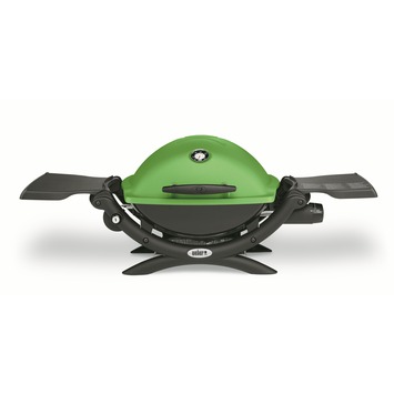 De Weber barbecue Q1200 groen heeft een tweedelig grillrooster van geëmailleerd gietijzer. Deze heeft geïntegreerde Flavorizer Bars die de brander tegen afdruipend vet en de gerechten tegen aanbranden beschermen. Met een uitneembaar druipbakje verwijder je probleemloos het vleessap. Deze gasbarbecue heeft een elektrische ontsteking voor het veilig aansteken van de barbecue. De Weber Q1200 heeft een kookoppervlakte van 43 bij 32 centimeter. Met de gasregelknop regel je de temperatuur optimaal. Het met glasvezel versterkte nylon frame is duurzaam en hitte- en weerbestendig. De deksel en kuip zijn van robuust gietaluminium. Hierdoor is de barbecue eenvoudig te reinigen en heeft het een lange levensduur. Het is mogelijk om de Weber Q1200 om te bouwen voor gasfles: voor voordelig en duurzaam barbecueën. De Weber barbecue Q1200 is 61 centimeter hoog, 103,9 centimeter breed en 49 centimeter diep. Deze barbecue is verkrijgbaar in diverse kleuren.