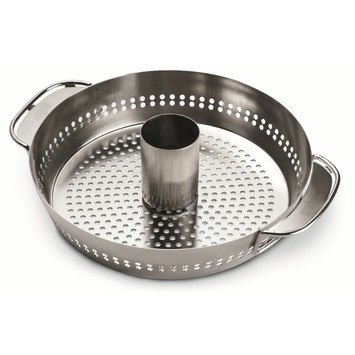 De Weber Gourmet BBQ System Gevogeltestomer is een twee-in-één ontwerp, gemaakt van roestvrij staal met afneembaar opzetstuk voor een kip. Deze gevogeltestomer is ook ideaal voor een gelijktijdige bereiding van groenten.