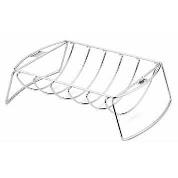 De Weber multifunctionele houder is een handige accessoire die je op meerdere manieren kunt gebruiken. Je kunt de houder aan twee kanten gebruiken om zo grotere stukken vlees langzaam te garen of spareribs of kip ruimtebesparend te grillen op de barbecue. Onder de houder kun je een druipbakje plaatsen, om vet en sappen op te vangen. De houder is 39 bij 27 centimeter groot en is daarmee geschikt voor houtskoolbarbecues met een diameter van 57 centimeter of meer en gasbarbecues vanaf de Weber Q300/3000.
