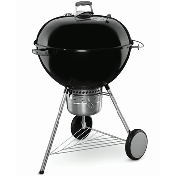 De Weber barbecue Original Kettle Premium zwart 67 cm maakt het barbecueën aangenaam. Deze Weber barbecue heeft twee houtskoolrails wat ideaal is voor de indirecte grillmethode. Het bovenrooster is verchroomd en heeft scharnieren voor het eenvoudig bijvullen van briketten. Deze barbecue is extra veilig door de dekselgreep met hitteschild en het vernieuwde en innovatieve asopvangsysteem dat het verwijderen van de as gemakkelijker maakt. De Original Kettle Premium heeft een One-Touch systeem voor het verwijderen van de as en het openen en sluiten van de ventilatieroosters voor optimale temperatuurregeling. In de deksel zit een thermometer voor permanente temperatuurcontrole tijdens het barbecueën. Een aan de binnenkant vastgelaste dekselhaak zorgt er daarbij voor dat je jouw eten tegen de wind kunt beschermen en dat je de deksel gemakkelijk aan de ketel op kunt hangen. De twee met glasvezel versterkte handgrepen hebben gereedschapshaken. Daarbij heeft de Original Kettle Premium scheurvaste en weerbestendige wielen waardoor de barbecue veilig te verplaatsen is. Het kookoppervlakte van deze Weber Original Kettle Premium is 67 centimeter. Het verbeterde ventilatierooster is van roestvrij aluminium, voor een eenvoudige temperatuurregeling. Ook handig: met de brikettenmaatbeker kun je precies de juiste hoeveelheid briketten afmeten. De poten van de barbecue bevatten een nieuw Push-Pin systeem waardoor de barbecue gemakkelijk op te bouwen is en stabiel staat. De Weber Original Kettle Premium is ook verkrijgbaar met een kookoppervlakte van 47 of 57 centimeter. Weber original Kettle premium zwart 67 cm is 107 centimeter hoog, 70 centimeter breed en 81 centimeter diep.